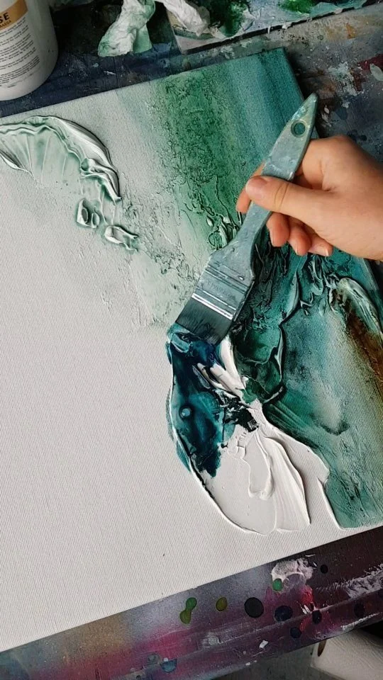 abstraktes Malen auf einer 30 × 40 cm Leinwand